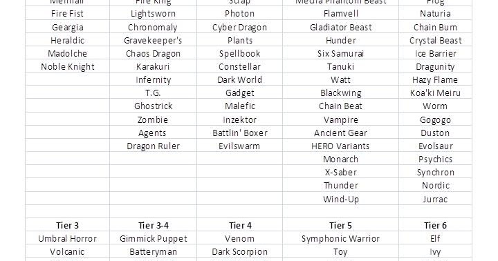 Yugioh archetypes tier list. In order for your ranking to count you need to be logged in and publish the list to the site not simply downloading the tier list image. Cross domination is an awesome spell card magical musket traps allow you to negate activations destroy cards and even banish cards from the graveyards. This category is a listing of archetypes. Each list includes all the monsters spells and trap cards that support the archetype. Yugioh decks tier list. Tsubasa tier list japo rojo.